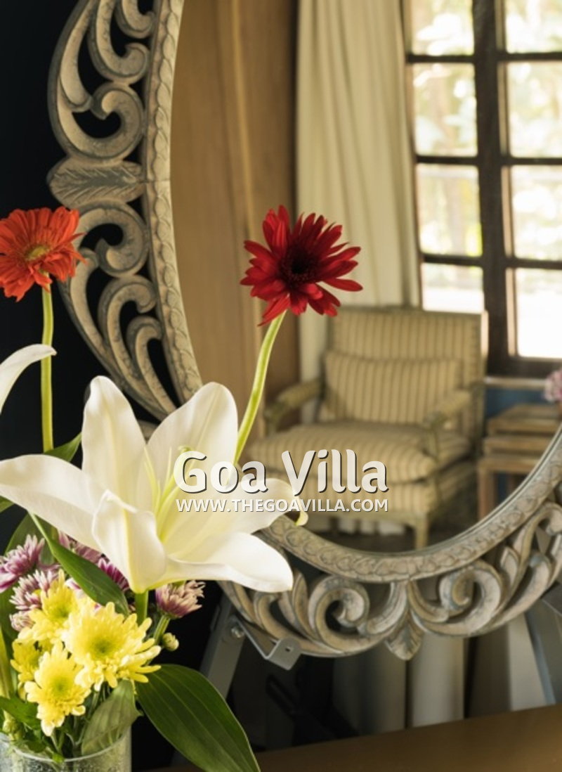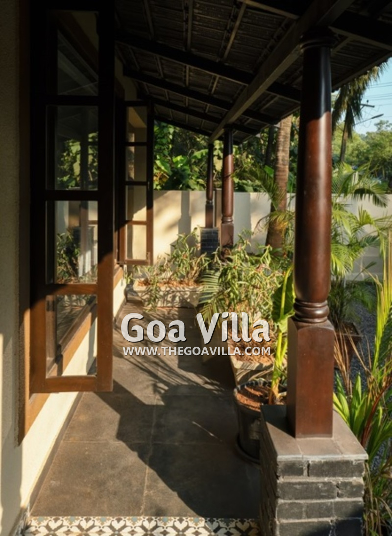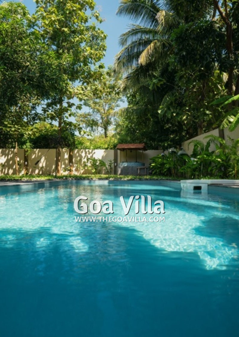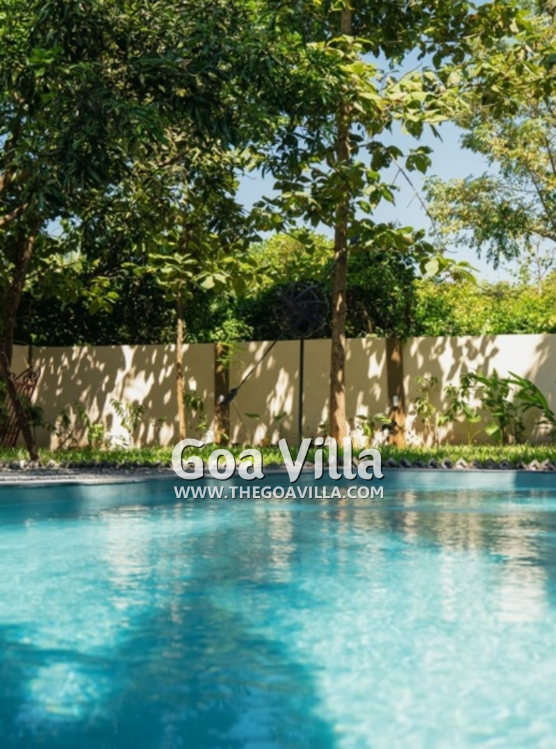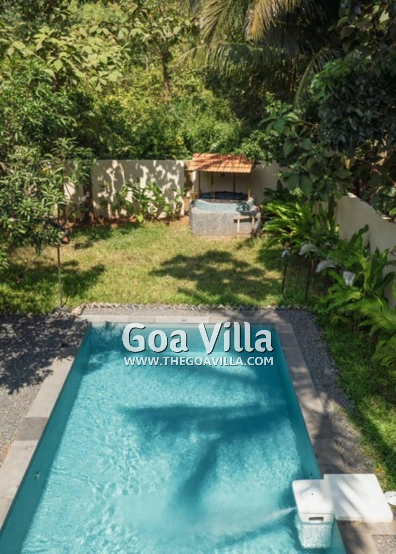 Swimming Pool – Guests staying in this villa for rent will like to spend many hours on its outside area, either swimming in the private pool, or catching the sun on the vast lawn. Steps lead down gently into the pool. There is also a smaller pool where the kids can have fun and learn to swim. On the farthest corner of the garden, you will find an old well. There was a time when most Goa homes used to have a well for water supply. A high wall secures the home, ensuring your security and privacy.