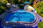 Comfortable 4 bedroom villa, ideal for total privacy and relaxation. The two-storied blue and white villa has an idillic garden and beautiful pool with blue and white tiles. The place is very cozy, welcoming, and has a rich landscaping with palm trees and forest.