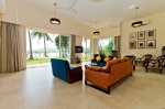 - The spacious and tastefully decorated living room has a TV, music system and offers views of the pool and river.
