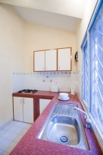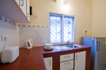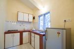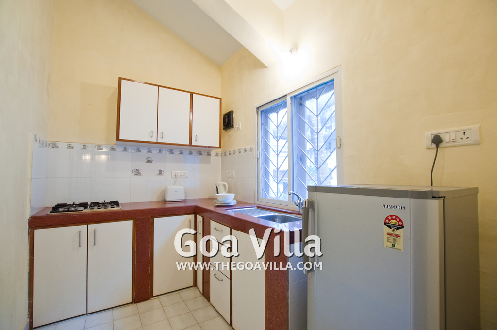 - The kitchen has a refrigerator, gas stove and set the necessary utensils.