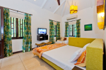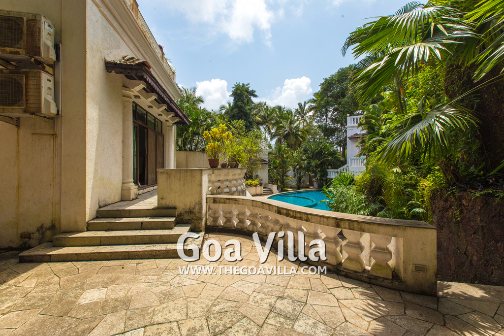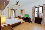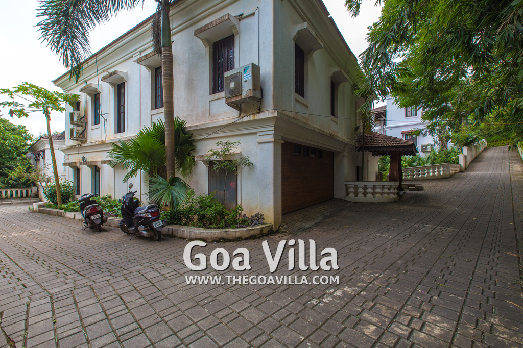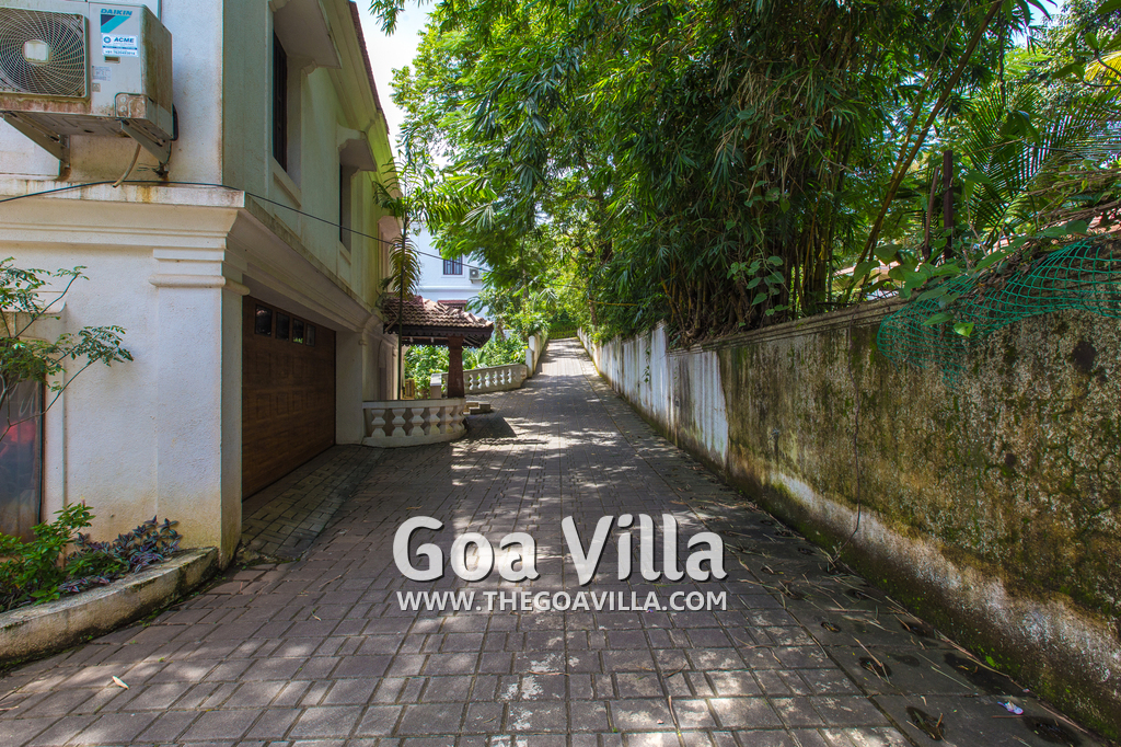 This holiday villa for rent is located at Pilerne in North Goa. Village ambience with many tall trees and traditional houses. Panaji, the capital of Goa, is just across the Mandovi River, only 15 minutes by car. You can visit Old Goa and the Salim Ali Bird Sanctuary – they are both close. Candolim, a top beach in Goa, is also close.