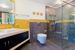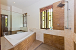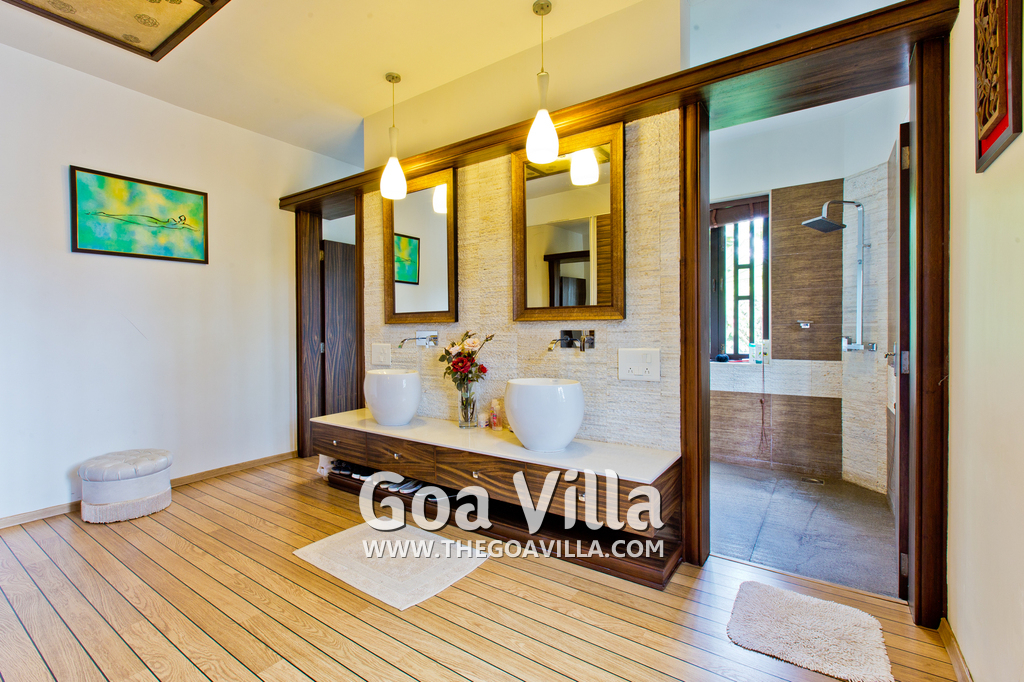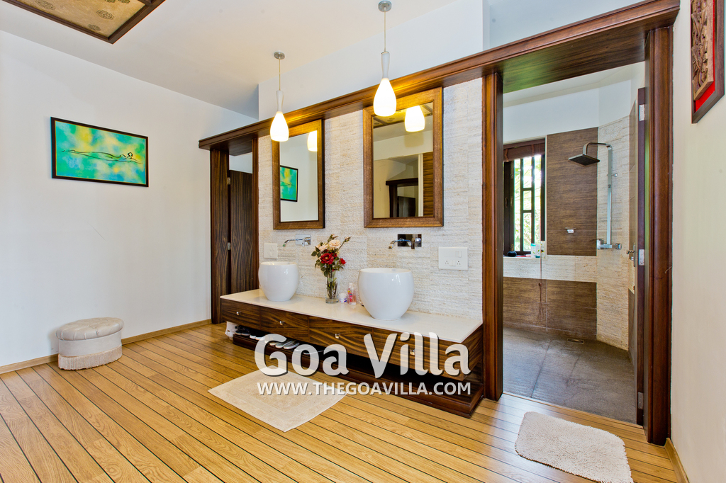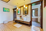 Bathrooms – The villa has large bathrooms with modern sinks and faucets. There is a shower cubicle, rainwater shower, and tub. His/her sinks with the master suite. Hardwood walls and flooring. Toiletries is provided.