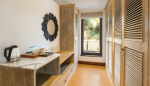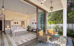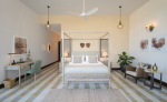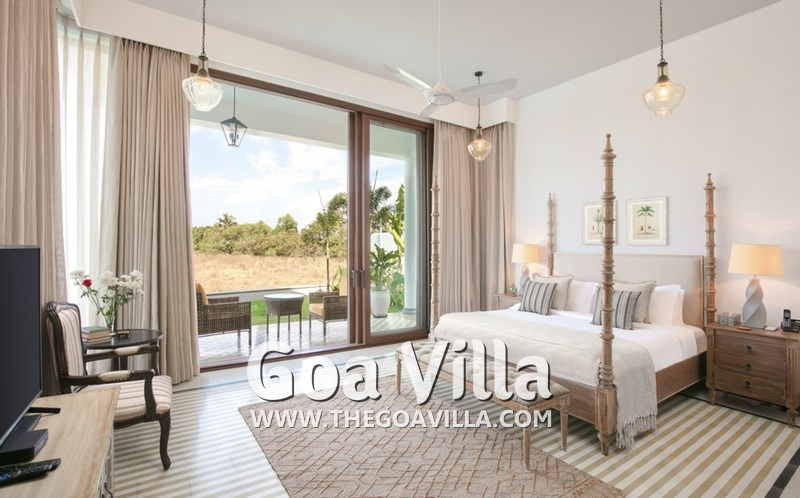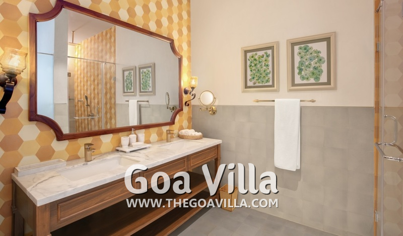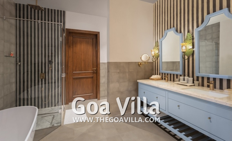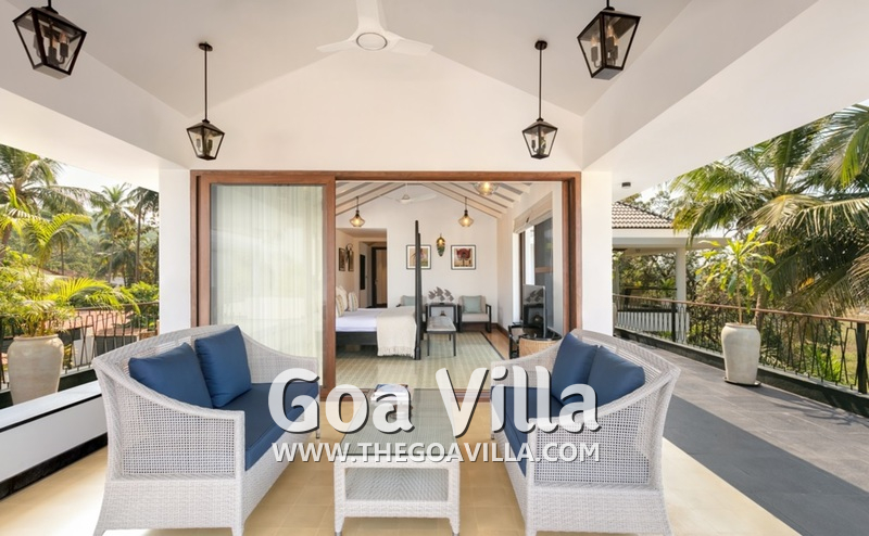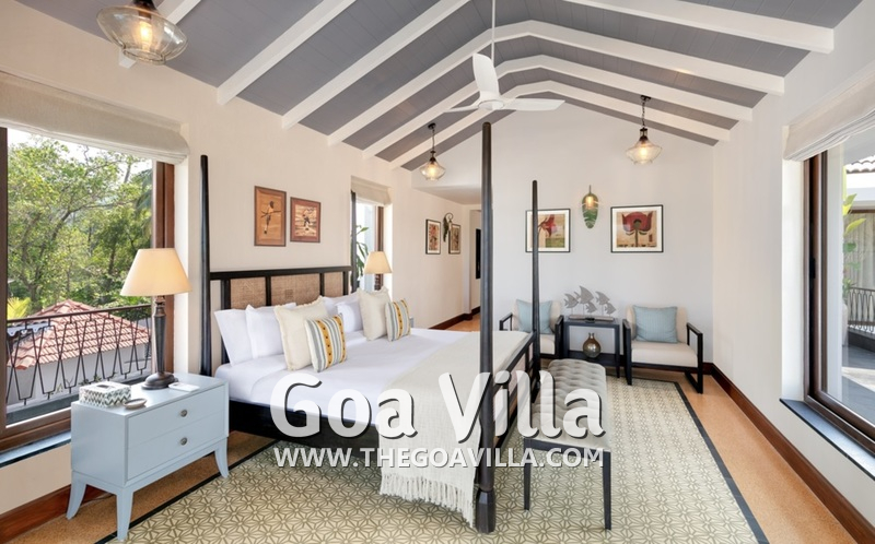 Bedrooms – This is a large property with 5 superbly furnished bedrooms. You can choose from queen or king beds. They all have four-poster beds with accompanying antique furniture. Hardwood or terracotta flooring with a tall ceiling also adds the colonial touch. There are study tables, private seating areas, wardrobes, rugs, and large-screen televisions. All the bedrooms have their own balconies with a second seating area. The balconies look out towards the greenery.
