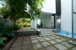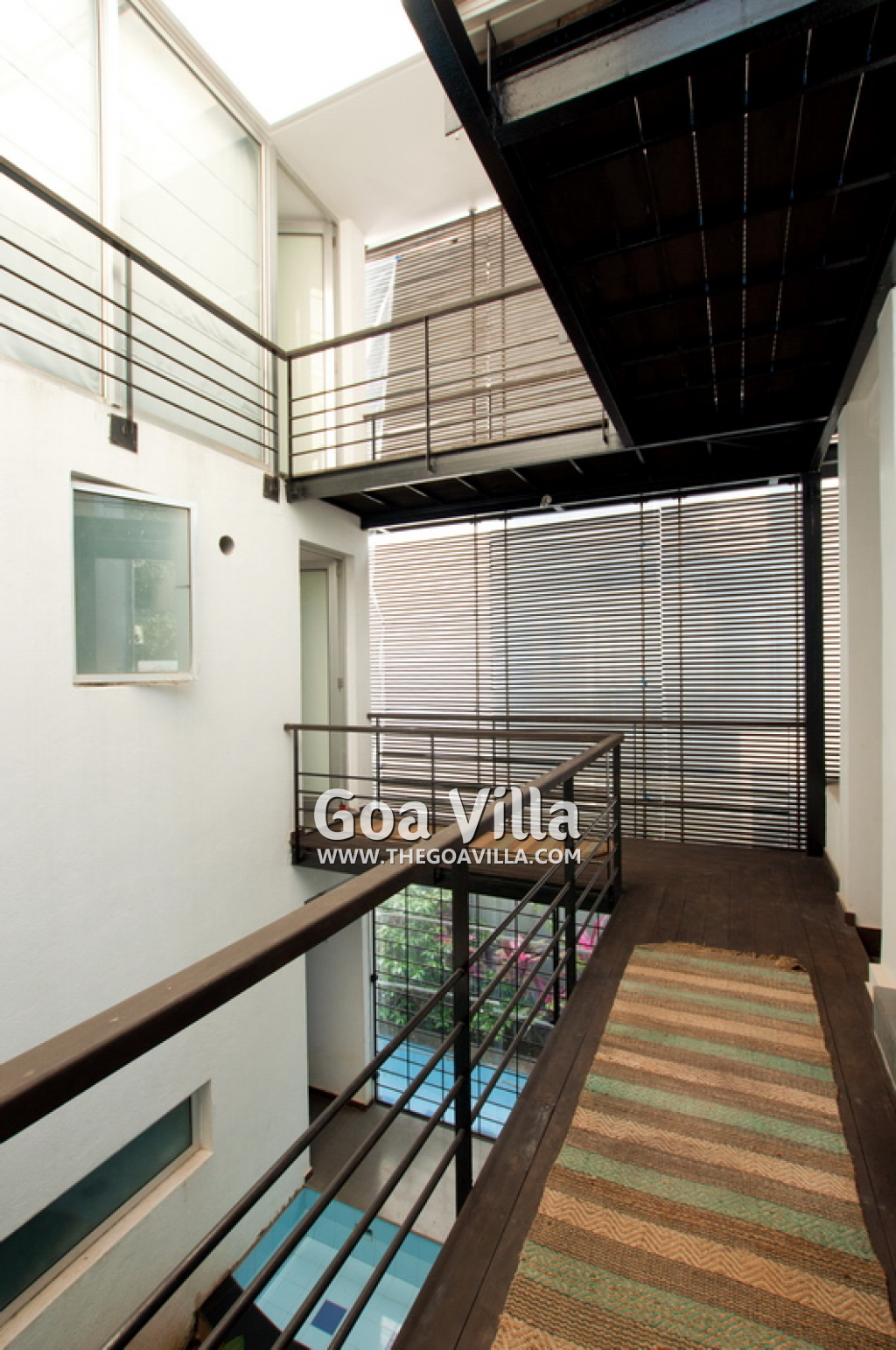 Die Villa Venetia Palace in Assagao has a modern elegant architecture und sophisticated room designs. There is an atrium with garden in the center of the villa.