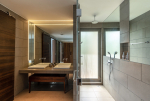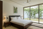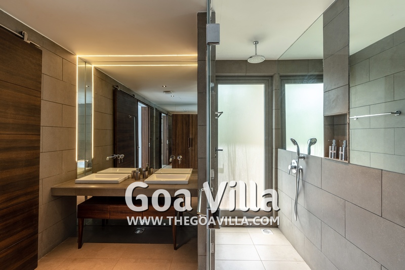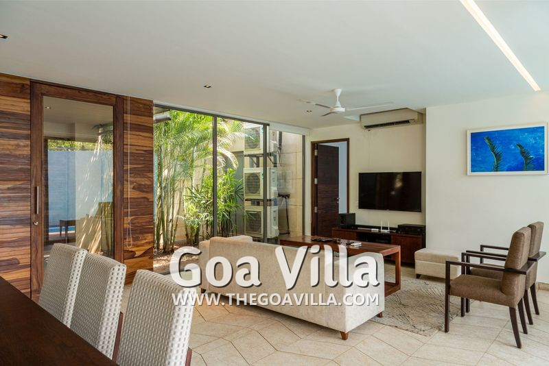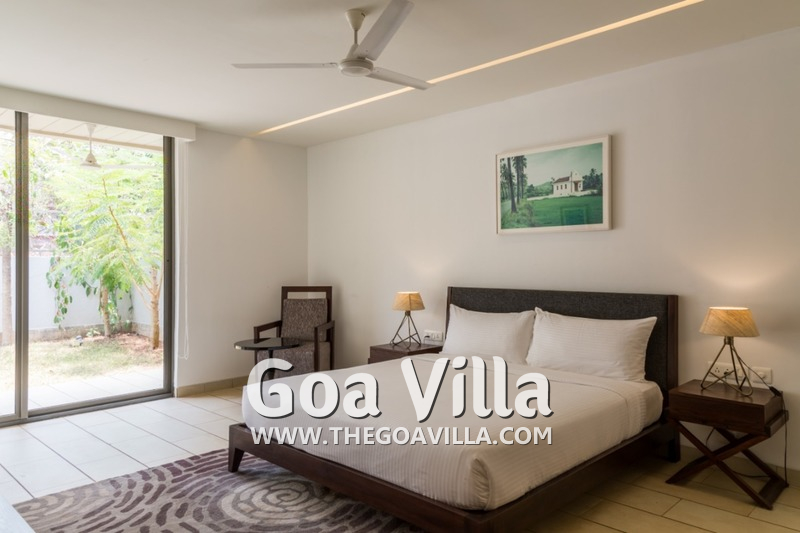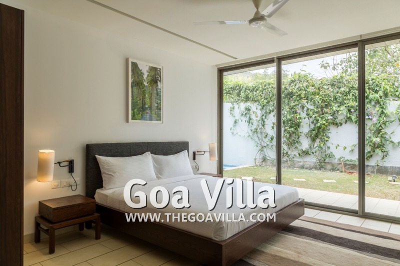 Bedrooms – The spacious house has 3 bedrooms for 6 guests, all with large king beds. What you will notice immediately are the large glass panels that occupy entire walls, which provide an open feel to these rooms, blending the interior with the outside. Bedroom #1 opens to the garden. Bedroom #2 opens to a manicured lawn. Bedroom #3 opens to the private swimming pool. So, they all have something different to offer. All the three bedrooms are air-conditioned. Since this is a single-storied house, all of you will be able to stay close, which is great.