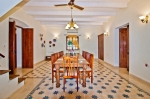 This Portuguese-style 5 bedroom villa with its large beautiful garden and private pool is located in the heart of the Candolim, just 5 minutes walk to Candolim beach and walking distance to the market, supermarket, cafes, banks and restaurants. Thanks to the individual design of the property, premises are well ventilated and even on the hottest day they keep you cool. A big advantage is a spacious area with a chic tropical garden. In the very center of a developed property you can immerse yourself in the peaceful atmosphere of natural greenery, enjoy the peace and singing of birds.