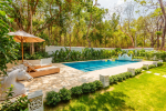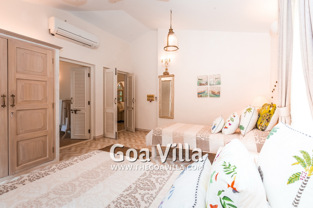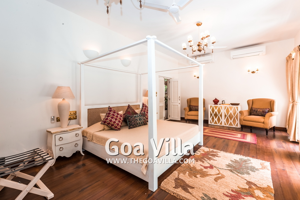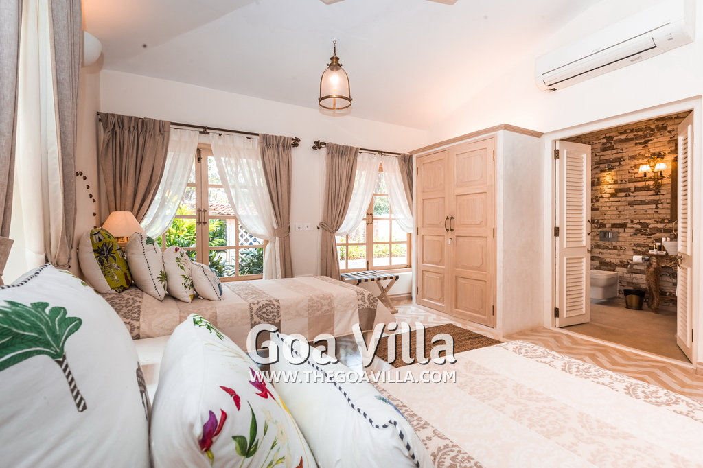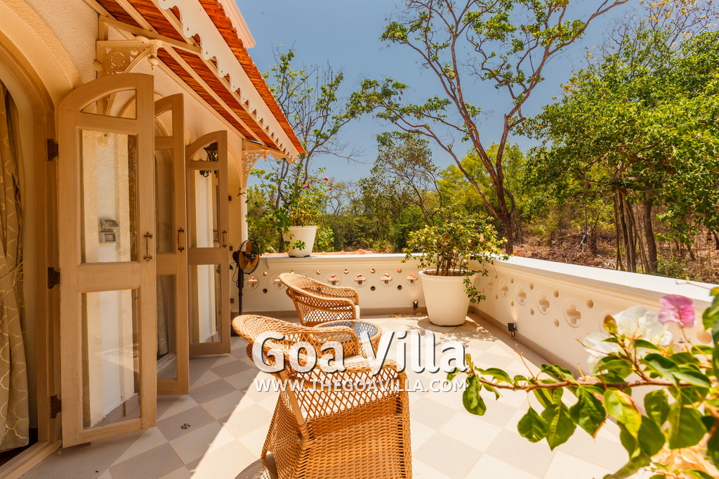 One of the finest villas in North Goa, it has 4 en-suite bedrooms with air conditioning. Spread over 2 floors, there is a fully equipped kitchen, a large living room, powder room, porch, terrace, private swimming pool, and small garden. Forest location.