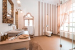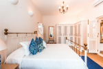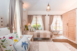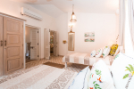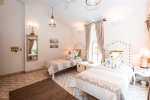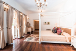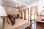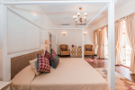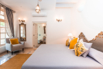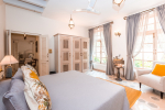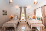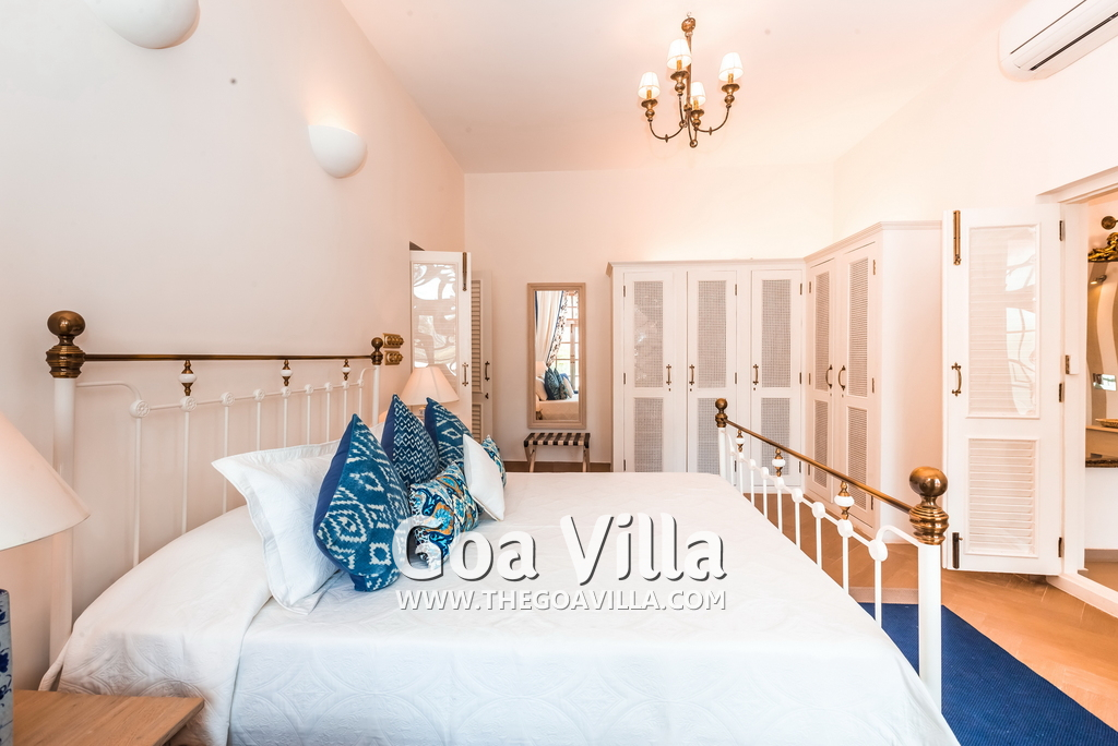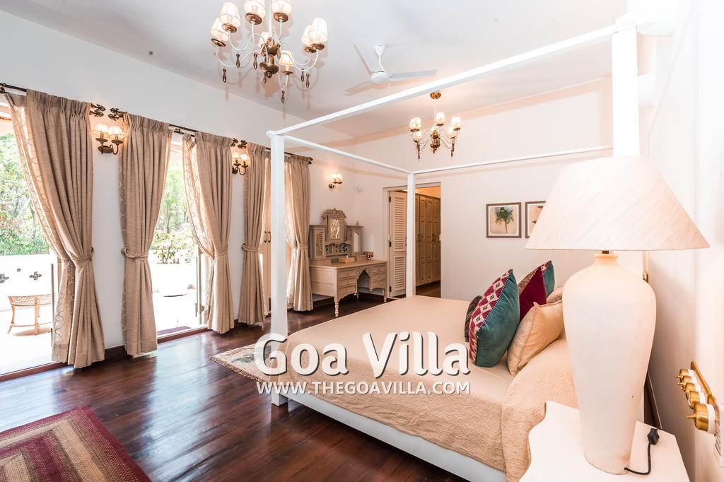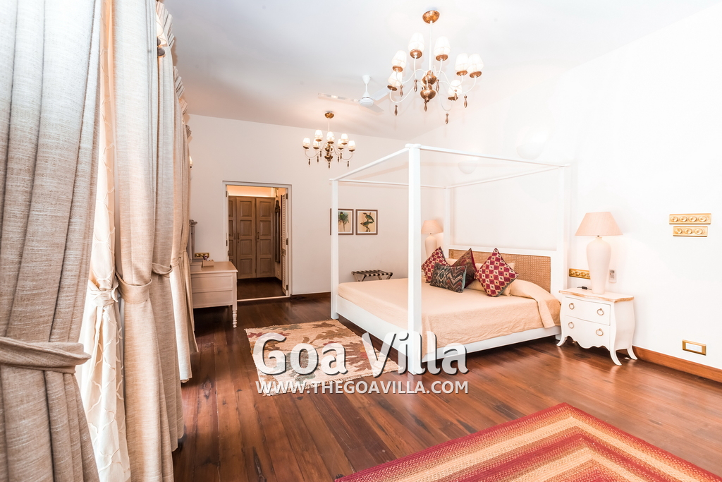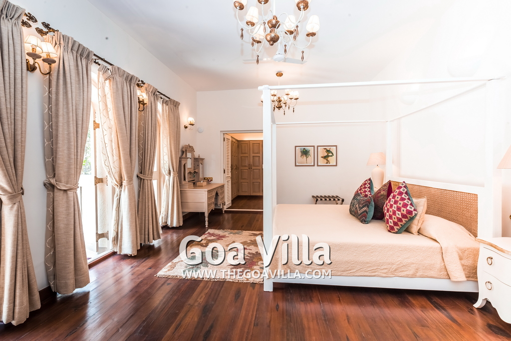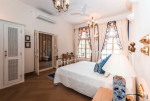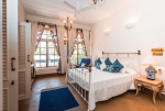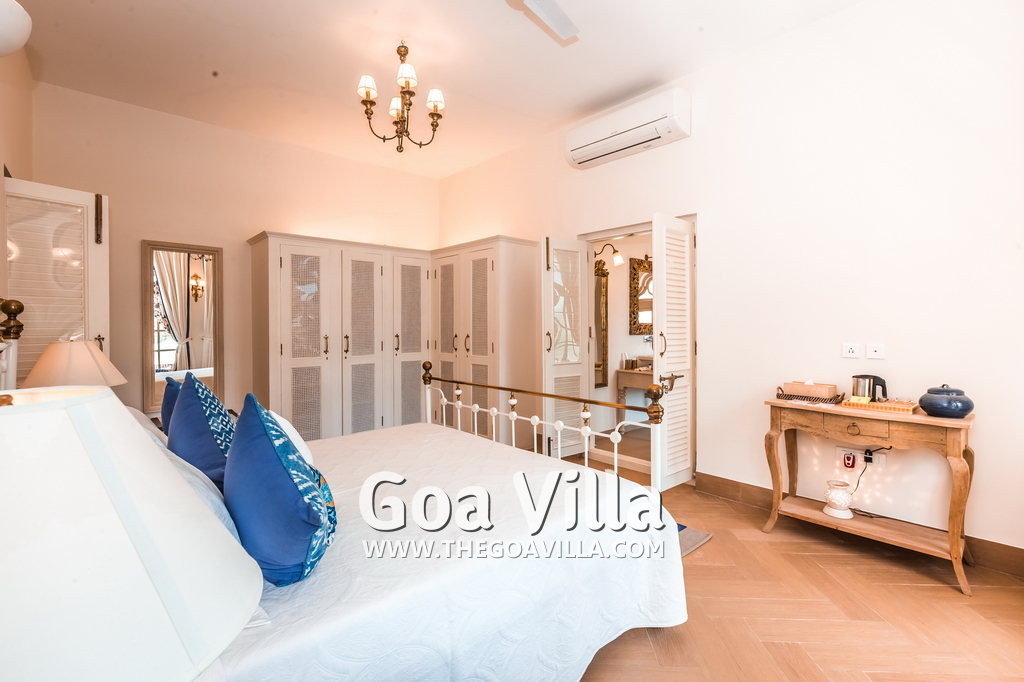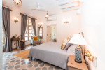 Bedrooms – 2 of the 4 bedrooms are on the ground floor, and the other 2 are on the 1st floor. Master bedroom on the 1st floor has a private balcony. The bedrooms are large with antique furniture, large double or twin beds with extra cushions, wardrobe, side table, mirror, paintings, chandeliers, and carpet. Each bedroom is individually decorated having a distinct personality.