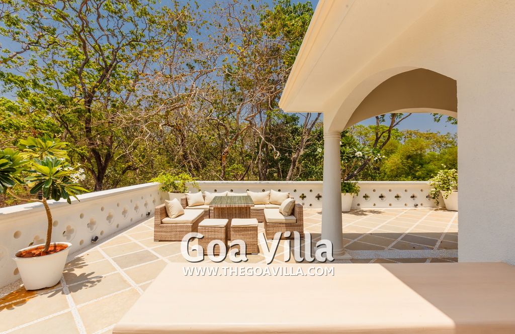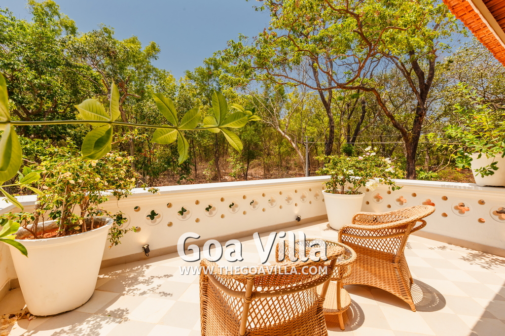 Terrace – The villa has a big and beautiful terrace overlooking the forest. There are both open and shaded sitting areas and fans. There is also an outdoor bar.