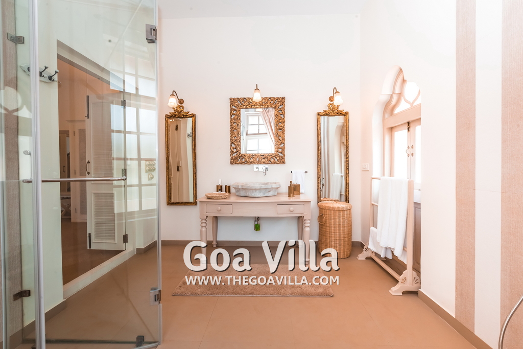 Bathrooms – The villa has big luxurious bathrooms with a separate shower cubicle, hand shower, sink, mirror, towel rack, hot/cold water, and toiletries. There is also a powder room on the ground floor.
