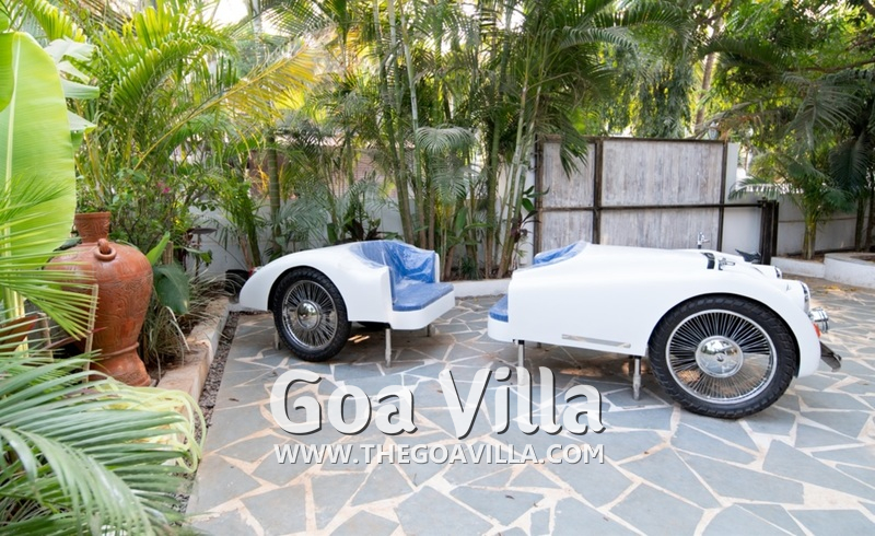 Swimming Pool – You will have your own private pool when you stay in this North Goa villa for rent. It is a beautiful pool with a poolside terrace, having many chairs, tables, and tables where you can relax and have a drink. The terrace also has a garden and an antique car that has been wonderfully transformed into a seating area.