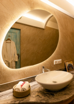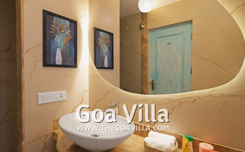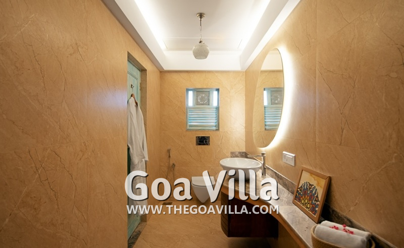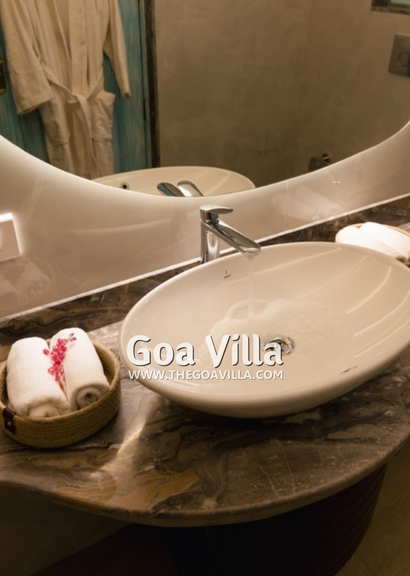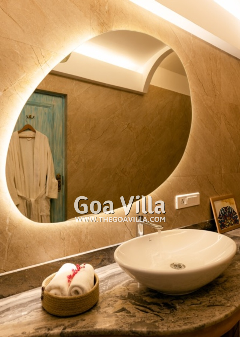 Bathrooms – All the 10 bedrooms in the house has ensuite bathrooms, all with bathtubs. They have beautiful marbled walls, huge mirrors, and modern washbasins. The lighting arrangement is unique. Towels, toiletries, and bathrobes are provided.