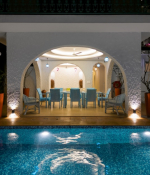 The villa has a private pool, garden, air-conditioned rooms, several lounging areas, bar, and a well-equipped kitchen. It is fully staffed for your convenience. The house has a villa manager, chef, security guards, and a housekeeping team. Villa Viva is at the side of the Anjuna River in Siolim. You will be surrounded by lush greenery as there are many tall palms and ancient trees in this quiet neighborhood. The green cover provides such a respite to the city-weary eyes. Guests seeking a luxurious hideaway for a memorable vacation are sure to be thrilled with this large property. Enjoy complete peace and privacy during your stay.