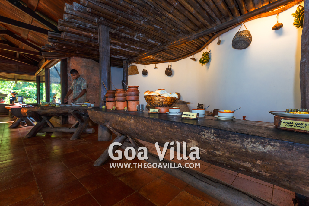 Houses built of wood, which is a rare feature in Goa. Whole village's location allows you to be as close to nature — to restore his strength, to make the body stronger and healthier. Only natural food and unique recipes served which will promote health, Some of the specialties of Goan cuisine include vindaloo, sorpotel and xacuti.