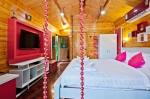 Each room has a large double bed, a large-format wall-mounted TV, a wardrobe, an air conditioner, a refrigerator, a kettle, and a bathroom with the latest sanitary equipment.