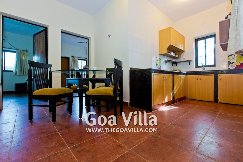 - The dining seats four people with the kitchenette adjacent and equipped with a Microwave, Refrigerator, Gas Stove, Induction Stove, Toaster, Kettle, Frying pan, Cooking Utensils, Crockery, Cutlery, Glasses and a storage space.