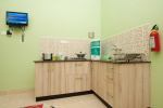 - Kitchen, despite its small size, well equipped with refrigerator, toaster, electric kettle, set of dishes and kitchen utensils.