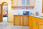 The kitchen has a refrigerator, gas stove, microwave and a set with all necessary utensils. The living room has a TV with satellite channels.