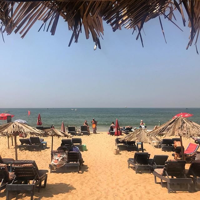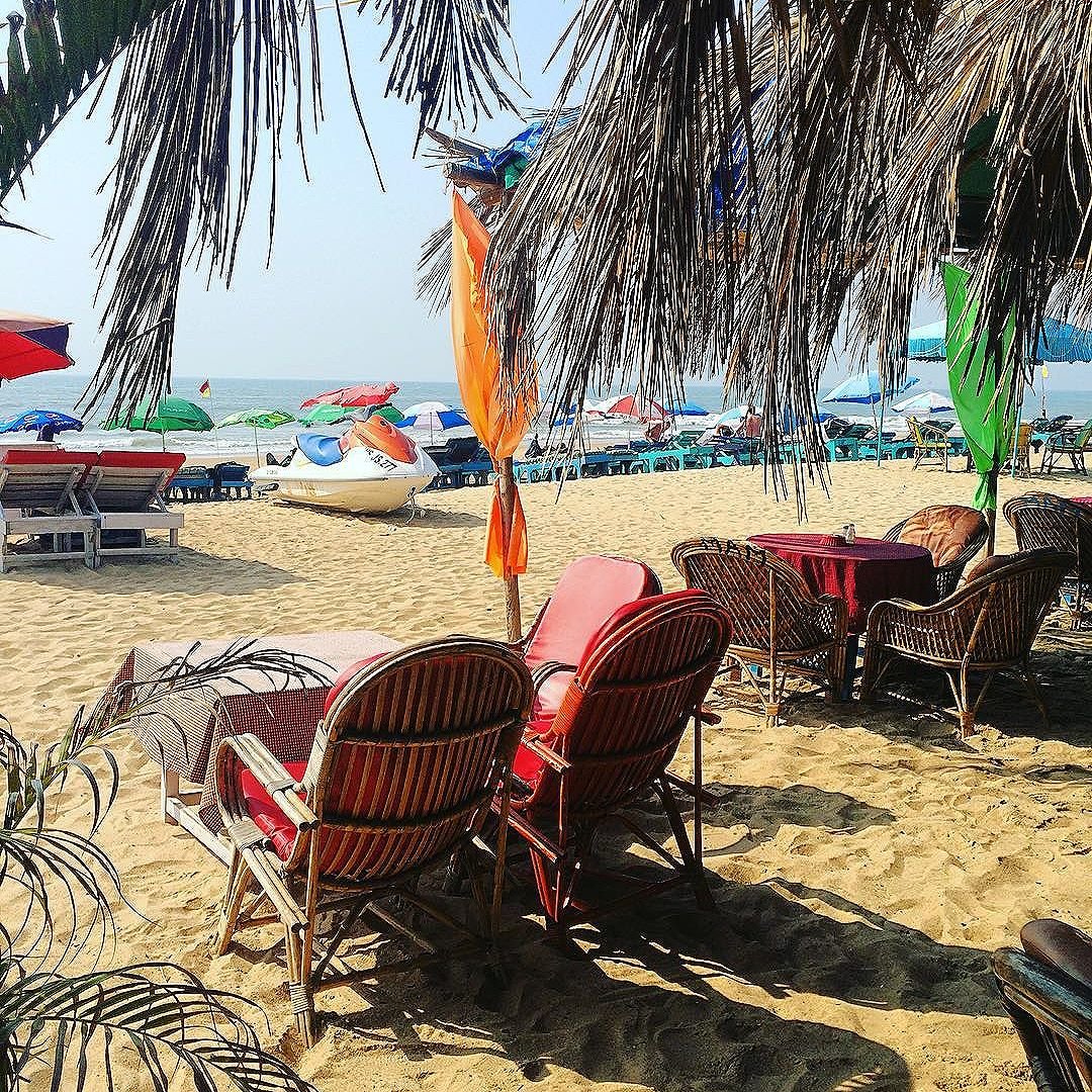 - Relax on Calangute beach – You will find beach shacks everywhere. They all have sun beds with umbrellas. The sun bed comes free if you order food or drinks at the shack. You can spend an entire day relaxing, getting a tan, and enjoying the views.